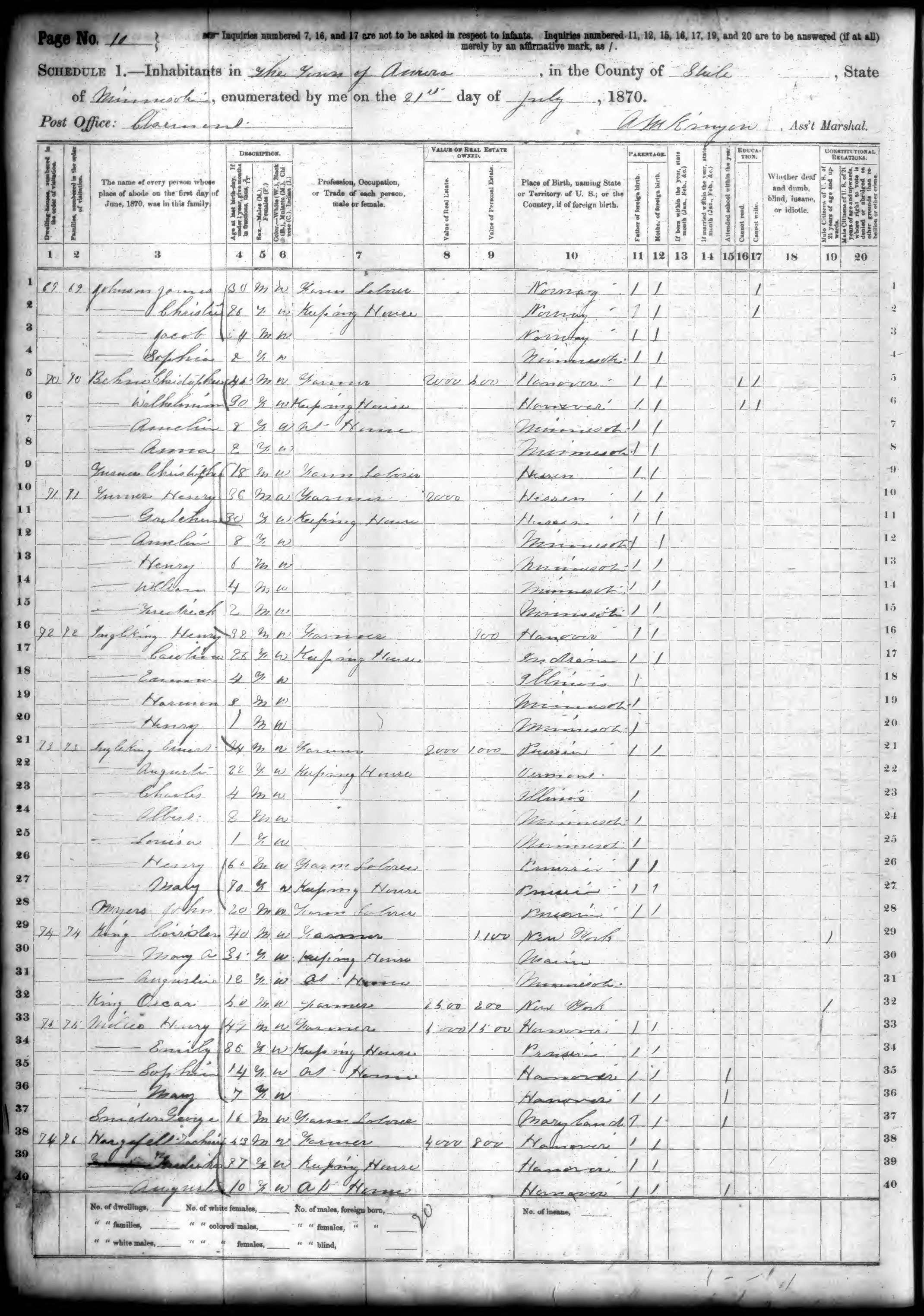 Ancestry.com Operations, Inc., 1880 United States Federal Census, ED 240, Aurora, Steele, MN, page 4, dwelling 25, family 25, line 7, Hagnfield, F; Database and images, Ancestry.com LLC, Ancestry.com : 2010 (http://www.Ancestry.com/ : accessed 06/18/2025); citing Tenth Census of the United States, 1880 U. S. Census, population schedules, National Archives and Records Administration Microfilm Publication T9 (1454 rolls), Records of the Bureau of the Census, Record Group 29, National Archives, Washington, DC, roll 635, image 44 [Surety: 3]. |