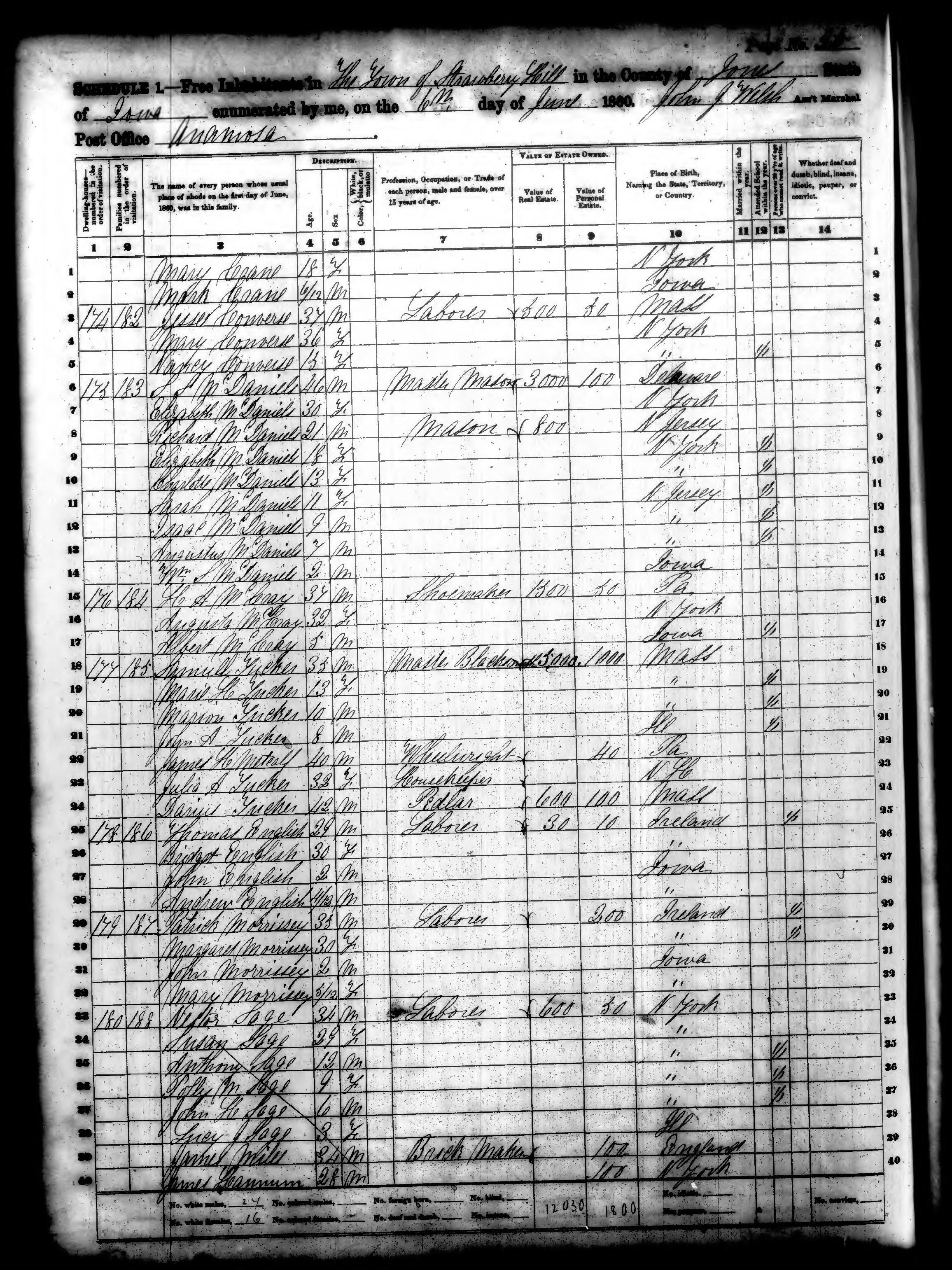 He worked as a laborer on 06/01/1860 in Strawberry Hill, Jones, Iowa . [2] |