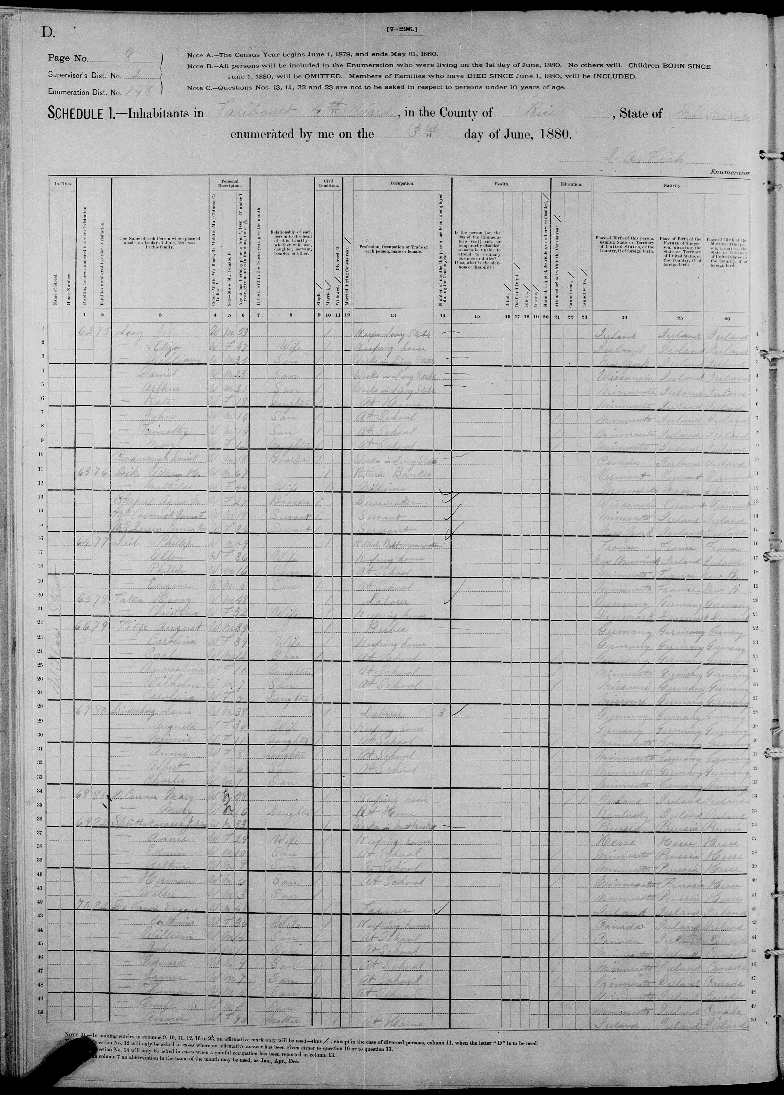 Ancestry.com Operations, Inc., 1880 United States Federal Census, ED 148, Faribault, Rice, MN, page 8, dwelling 69, family 82, line 37, Splittstacaser, Annie; Database and images, Ancestry.com LLC, Ancestry.com : 2010 (http://www.Ancestry.com/ : accessed 02/27/2016); citing Tenth Census of the United States, 1880 U. S. Census, population schedules, National Archives and Records Administration Microfilm Publication T9 (1454 rolls), Records of the Bureau of the Census, Record Group 29, National Archives, Washington, DC, roll 632, image 500 [Surety: 3]. |