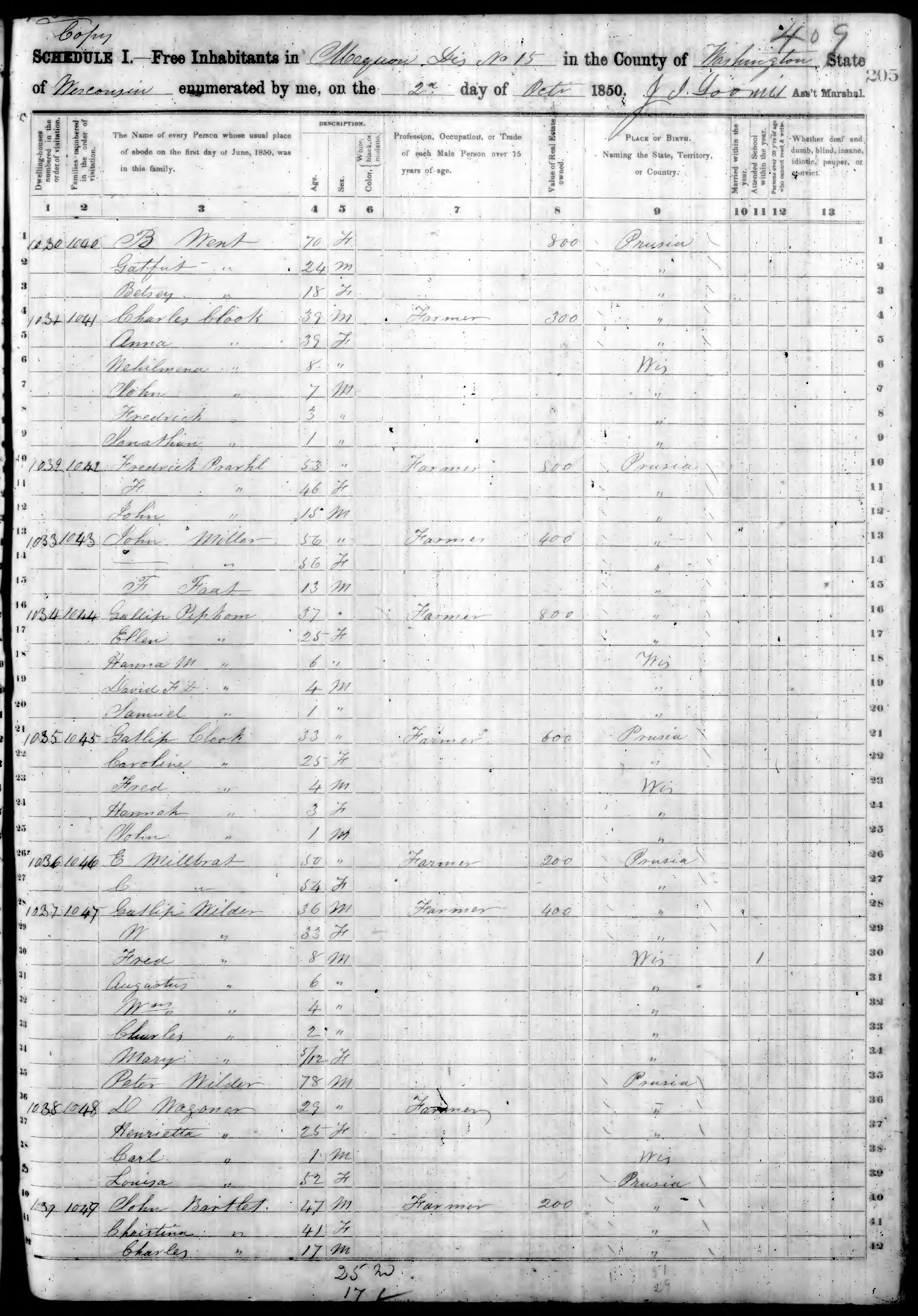 Ancestry.com Operations, Inc., 1840 United States Federal Census, Washington County, Wisconsin Territory, page 1, line 8, Calr B Hewer; Database and images, Ancestry.com LLC, Ancestry.com : 2010 (http://www.Ancestry.com/ : accessed 02/18/2011); citing Sixth Census of the United States, 1840 U. S. Census, population schedules, National Archives and Records Administration Microfilm Publication M704 (580 rolls), Records of the Bureau of the Census, Record Group 29, National Archives, Washinton, DC, roll 580, image 251 [Surety: 2]. |