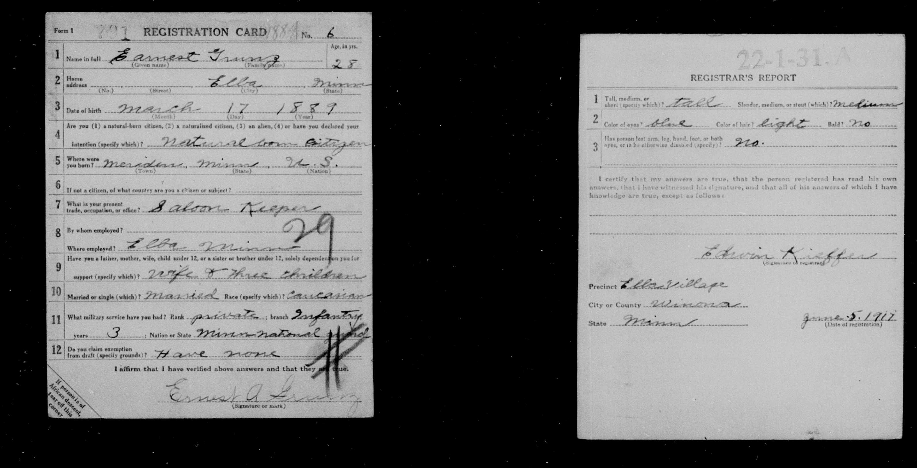 He registered for the Draft for World War I on 06/05/1917 in Elba, Winona, Minnesota . [16] |