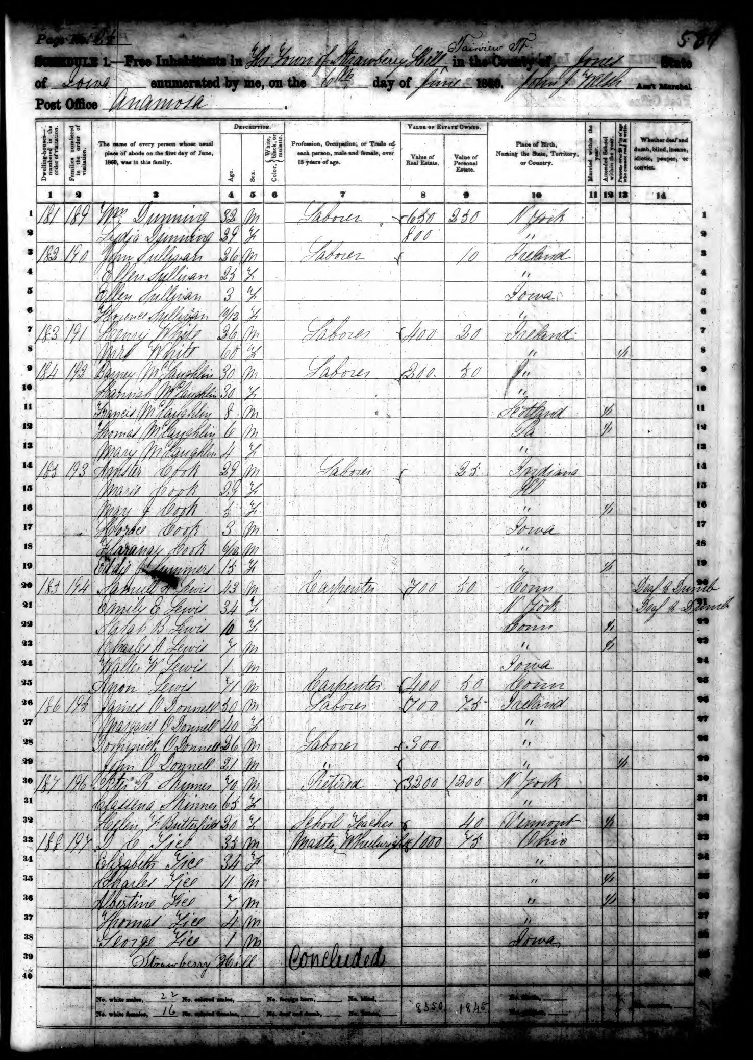 He worked as a laborer on 06/01/1860 in Strawberry Hill, Jones, Iowa . [1] |
