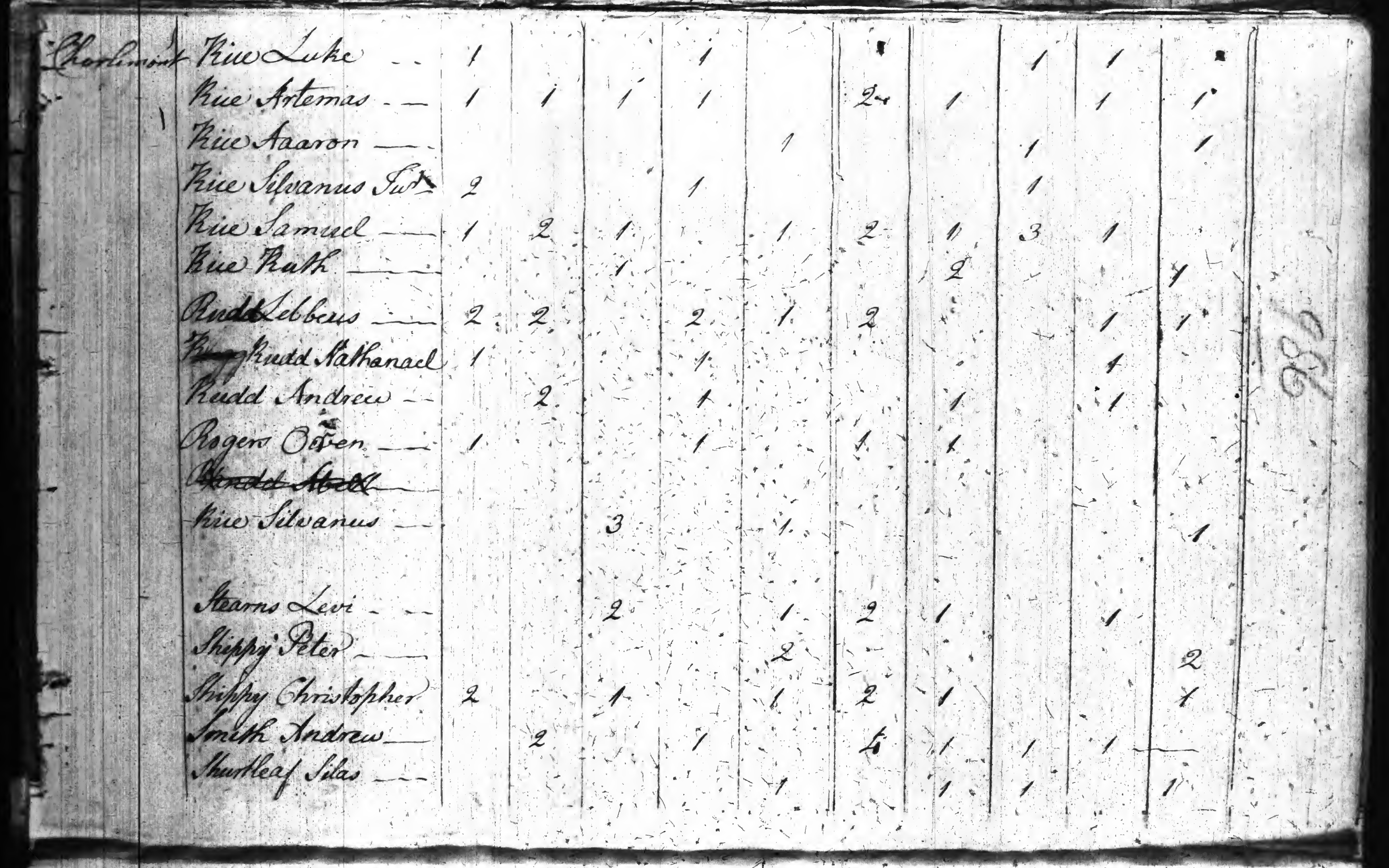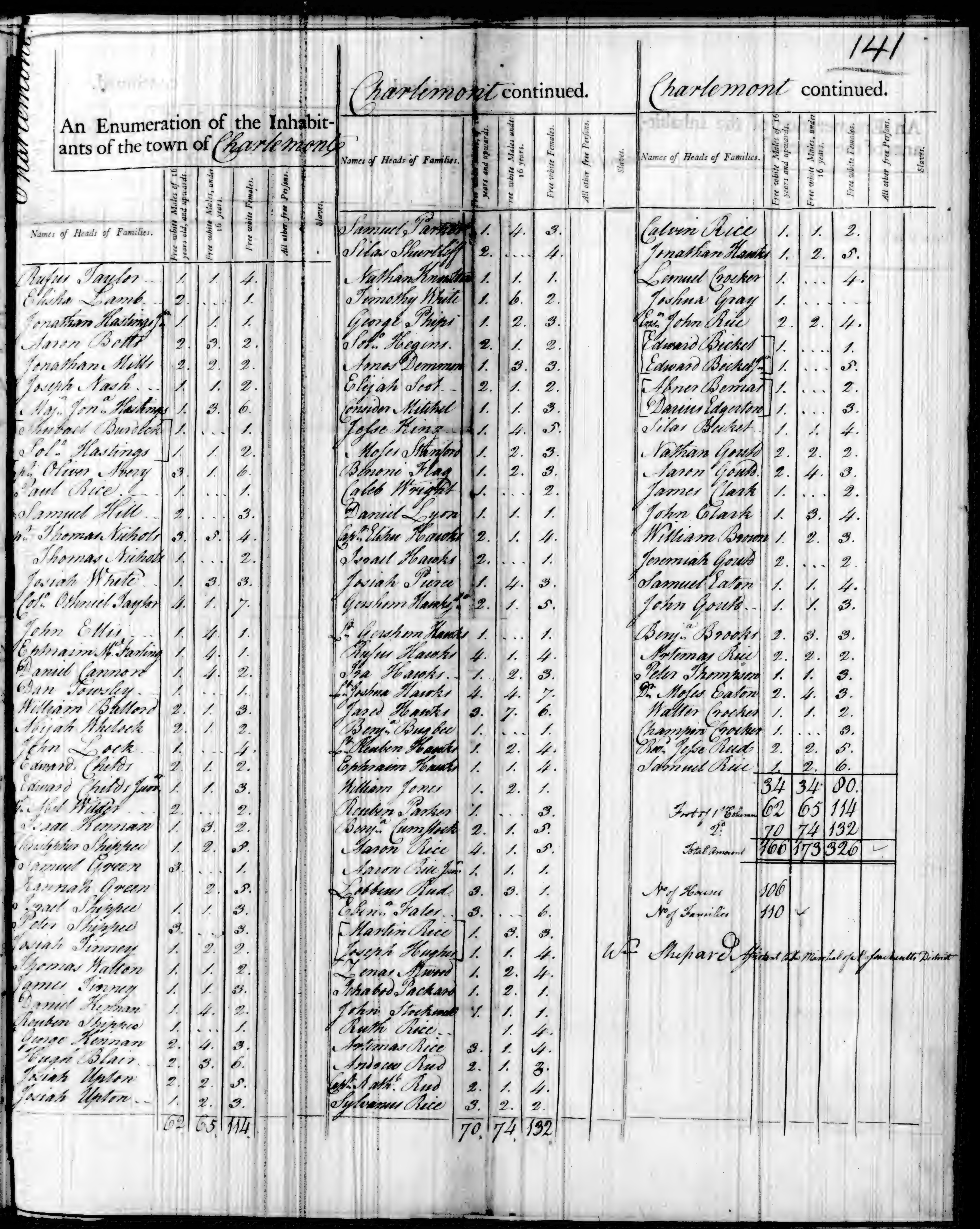 Ancestry.com Operations, Inc., 1790 United States Federal Census, Charlemont, Hampshire, MA, page 141, col 1, line 32, Peter Shippee; Database and images, Ancestry.com LLC, Ancestry.com : 2010 (http://www.Ancestry.com/ : accessed 06/17/2024); citing First Census of the United States, 1790 U. S. Census, population schedules, National Archives and Records Administration, Microfilm Publication M637 (12 rolls), Records of the Bureau of the Census, Record Group 29, National Archives, Washinton, DC, roll 4, image 167 [Surety: 2]. |