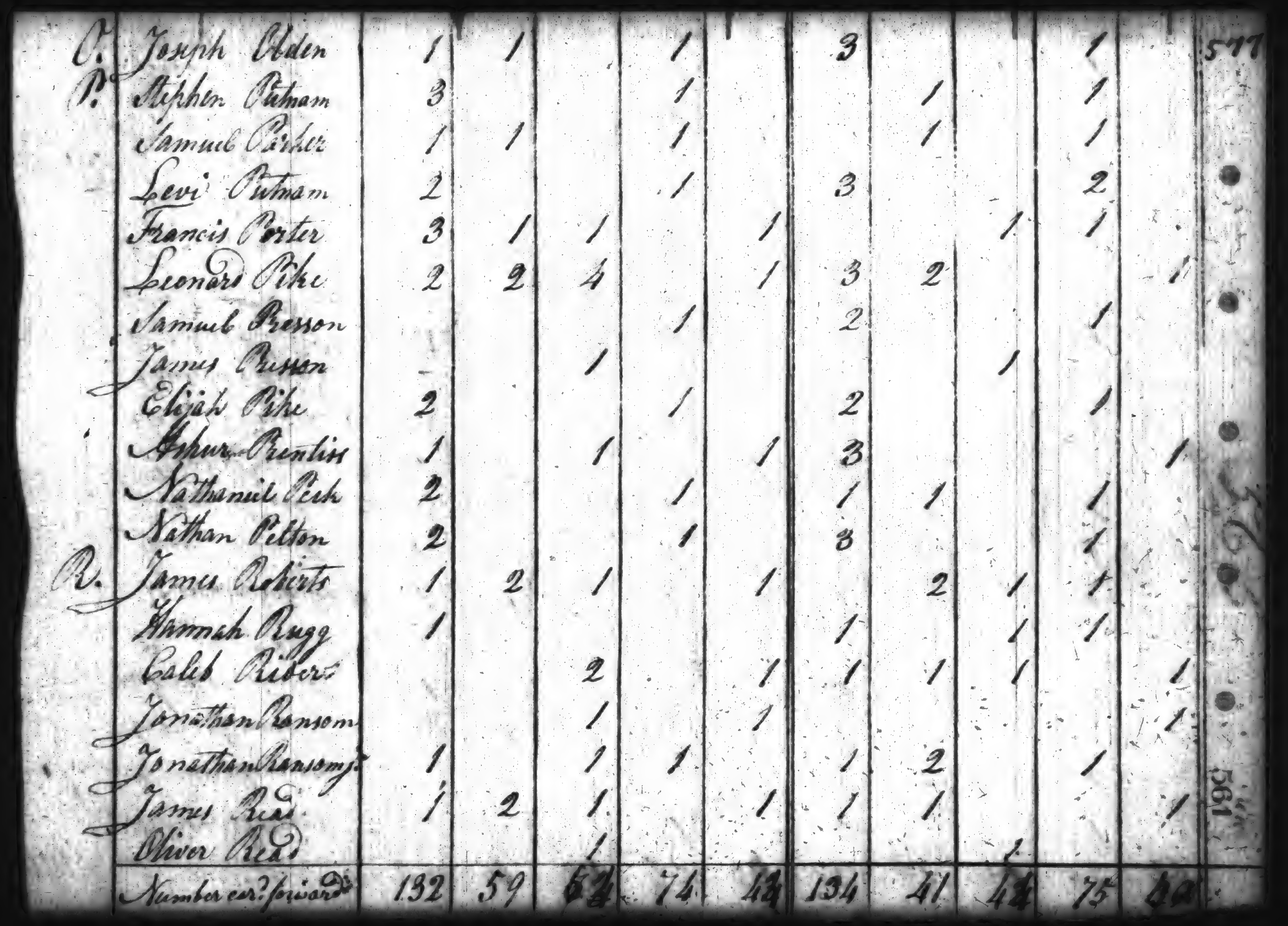 Ancestry.com Operations, Inc., 1800 United States Federal Census, Whitingham, Windham, VT, page 577, line 6, Leonard Pike; Database and images, Ancestry.com LLC, Ancestry.com : 2010 (http://www.Ancestry.com/ : accessed 07/01/2024); citing Second Census of the United States, 1800 U. S. Census, population schedules, National Archives and Records Administration, Microfilm Publication M32 (52 rolls), Records of the Bureau of the Census, Record Group 29, National Archives, Washinton, DC, roll 52, image 564 [Surety: 2]. |