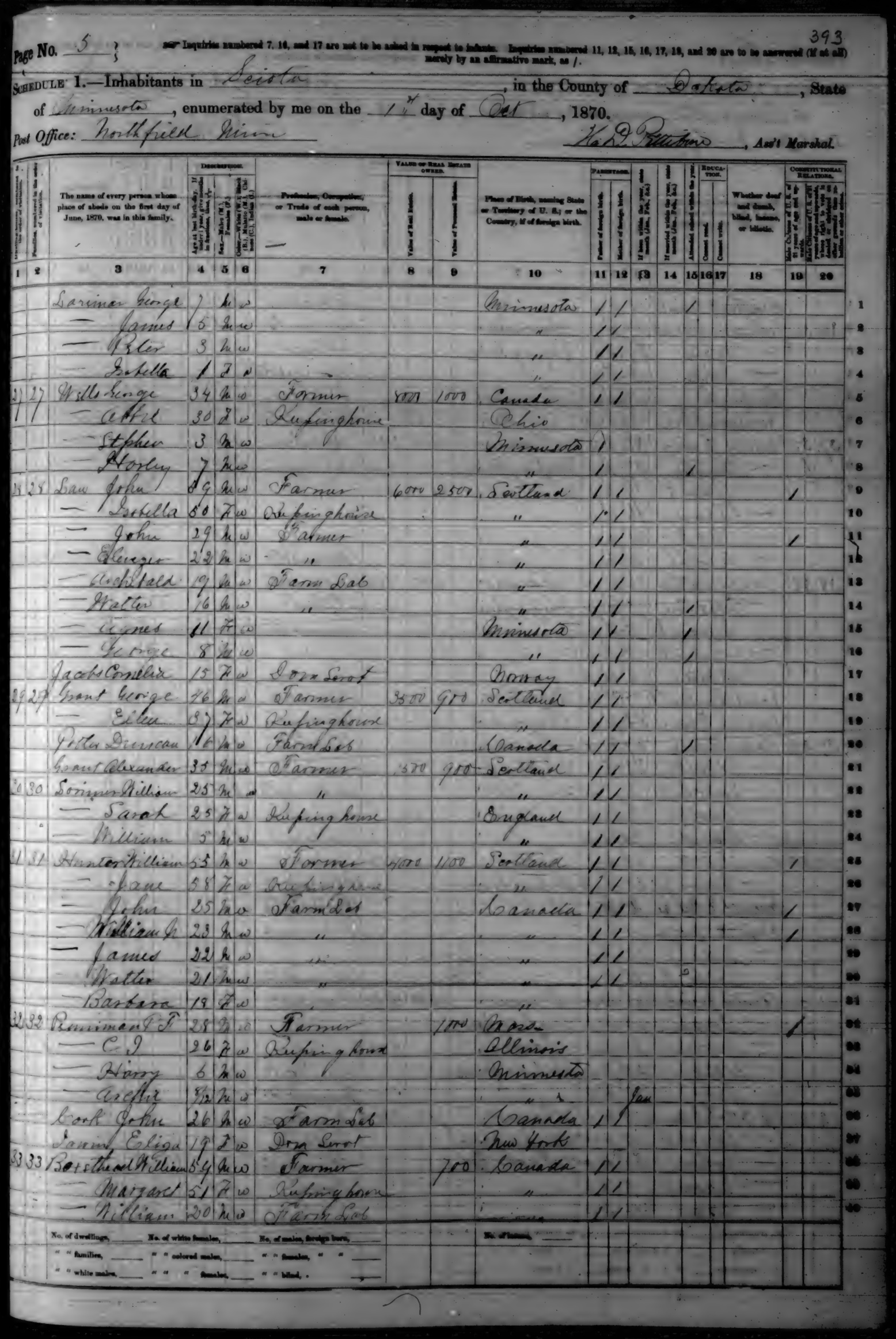 Ancestry.com Operations, Inc., 1870 United States Census, Sciota, Dakota, MN, page 5, dwelling 28, family 28, line 14, Law, Walter; Database and images, Ancestry.com LLC, Ancestry.com : 2009 (http://www.Ancestry.com/ : accessed 11/28/2022); citing Ninth Census of the United States, 1870 U. S. Census, population schedules, National Archives and Records Administration Microfilm Publication M593 (1761 rolls), Records of the Bureau of the Census, Record Group 29, National Archives, Washington, DC, roll 2, image 604 [Surety: 3]. |