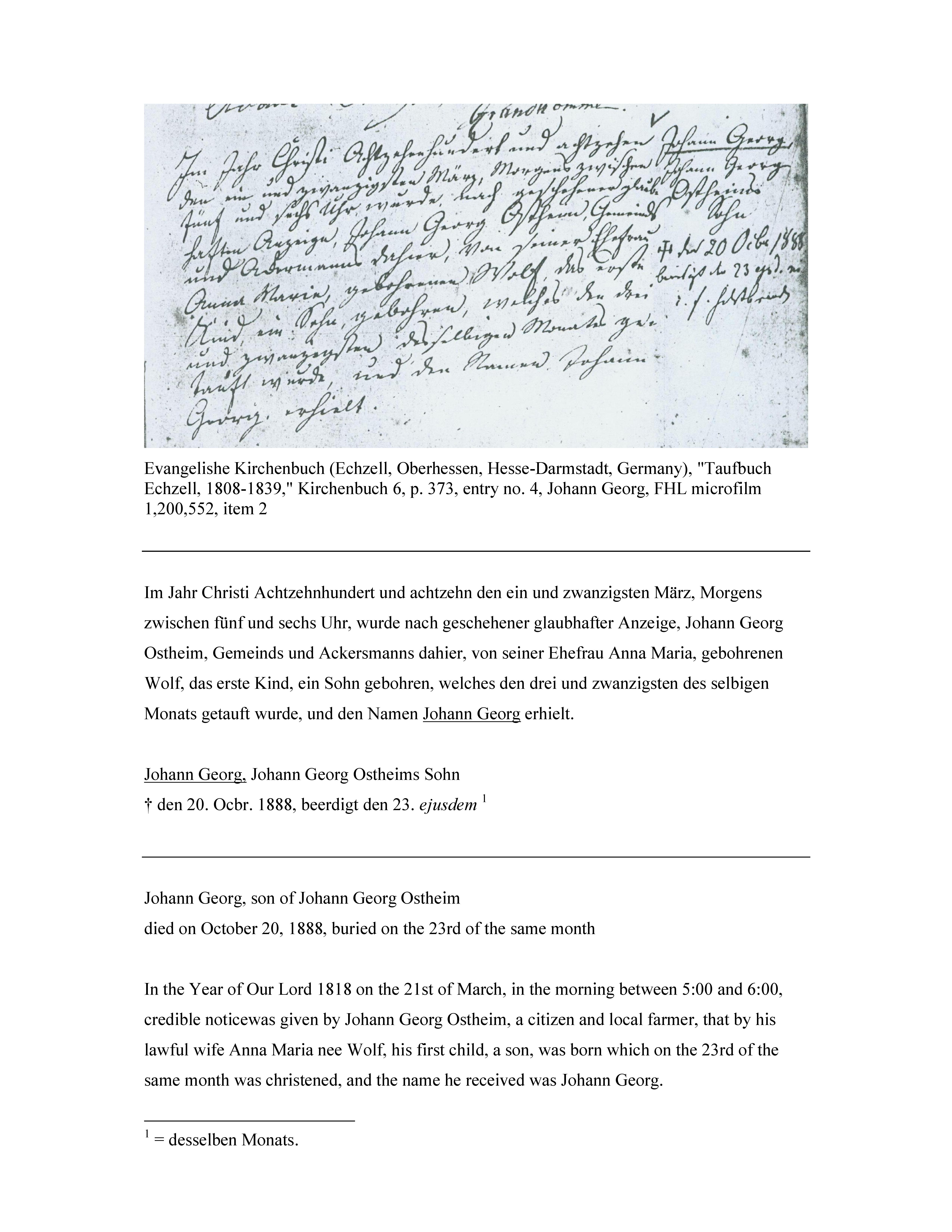 The Church of Jesus Christ of Latter-Day Saints, "Germany Births and Baptisms, 1558-1898," Johann Georg Ostheim; database, The Church of Jesus Christ of Latter-Day Saints, FamilySearch : n.d. (http://www.FamilySearch.org/ : accessed 02/21/2011) [Surety: 3]. |