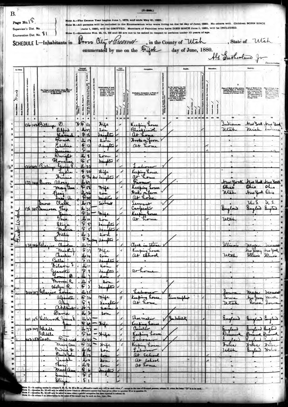 | 9. | Ancestry.com Operations, Inc., 1880 United States Federal Census, ED 81, Ward 1, Provo, Utah, UT, page 18, dwelling 137, family 144, line 15, Pearce, Inez A; Database and images, Ancestry.com LLC, Ancestry.com : 2010 (http://www.Ancestry.com/ : accessed 06/27/2025); citing Tenth Census of the United States, 1880 U. S. Census, population schedules, National Archives and Records Administration Microfilm Publication T9 (1454 rolls), Records of the Bureau of the Census, Record Group 29, National Archives, Washington, DC, roll 1338, image 482 [Surety: 3]. |