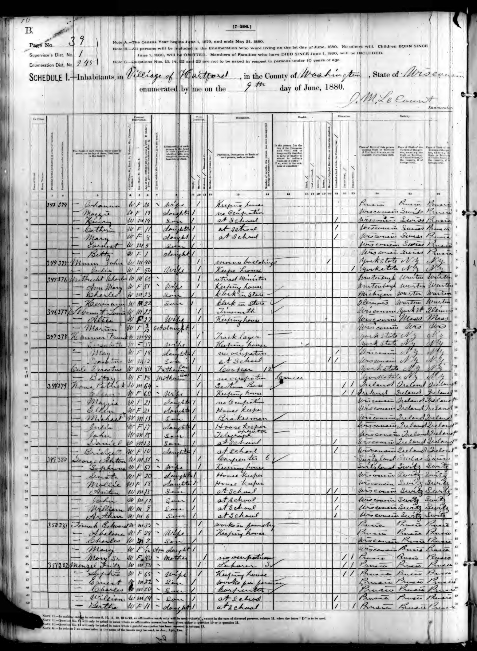 Ancestry.com Operations, Inc., Wisconsin State Censuses 1855-1905, 1885, Hartford, Washington, page 22, line 22, St Rudi; Database and images, Ancestry.com LLC, Ancestry.com : 2007 (http://www.Ancestry.com/ : accessed 09/01/2025); roll 8); citing Wisconsin Historical Society, Madison, Wisconsin, Wisconsin State Census, 1885, microfilm (10 reels) [Surety: 3]. |