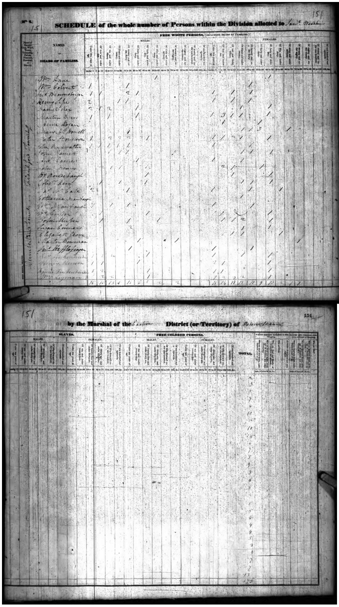 Ancestry.com Operations, Inc., 1850 United States Federal Census, Frankford, Cumberland, PA, page 15, dwelling 106, family 108, line 25, Lucy Finkenbinder; Database and images, Ancestry.com LLC, Ancestry.com : 2009 (http://www.Ancestry.com/ : accessed 01/08/2020); citing Seventh Census of the United States, 1850 U. S. Census, population schedules, National Archives and Records Administration Microfilm Publication M432 (1009 rolls), Records of the Census Bureau, Record Group 29, National Archives, Washington, DC, roll 772, image 181 [Surety: 3]. |