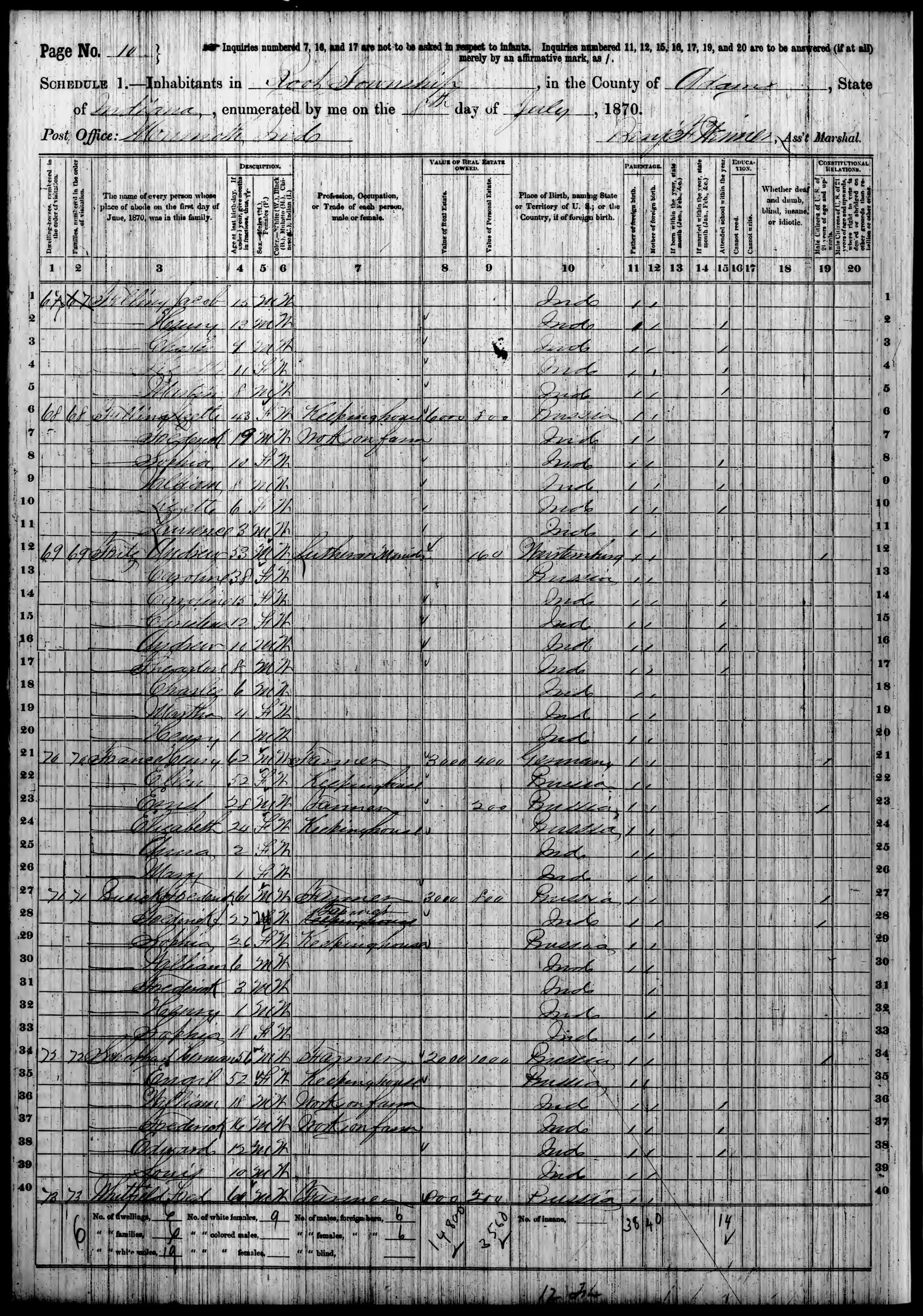 | 1. | Ancestry.com Operations, Inc., 1870 United States Census, Root, Adams, IN, page 10, dwelling 69, family 69, line 20, Fritz, Henry; Database and images, Ancestry.com LLC, Ancestry.com : 2009 (http://www.Ancestry.com/ : accessed 2/15/2011); citing Ninth Census of the United States, 1870 U. S. Census, population schedules, National Archives and Records Administration Microfilm Publication M593 (1761 rolls), Records of the Bureau of the Census, Record Group 29, National Archives, Washington, DC, roll 296, image 161 [Surety: 3]. |