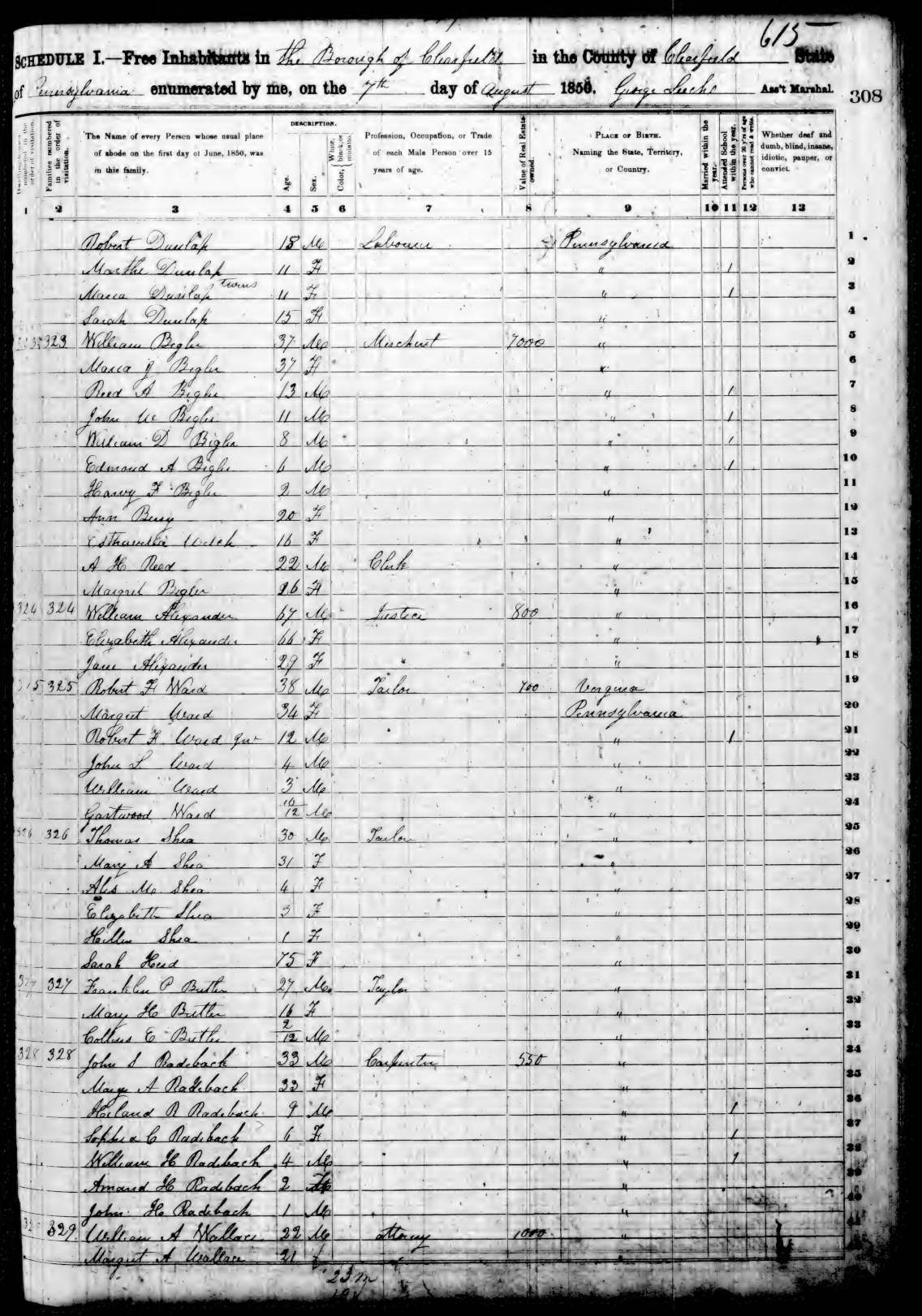 Ancestry.com Operations, Inc., 1850 United States Federal Census, Clearfield, Clearfield, PA, page 615, dwelling 323, family 323, line 15, Margret Bigler; Database and images, Ancestry.com LLC, Ancestry.com : 2009 (http://www.Ancestry.com/ : accessed 05/31/2025); citing Seventh Census of the United States, 1850 U. S. Census, population schedules, National Archives and Records Administration Microfilm Publication M432 (1009 rolls), Records of the Census Bureau, Record Group 29, National Archives, Washington, DC, roll 768, image 51 [Surety: 3]. |